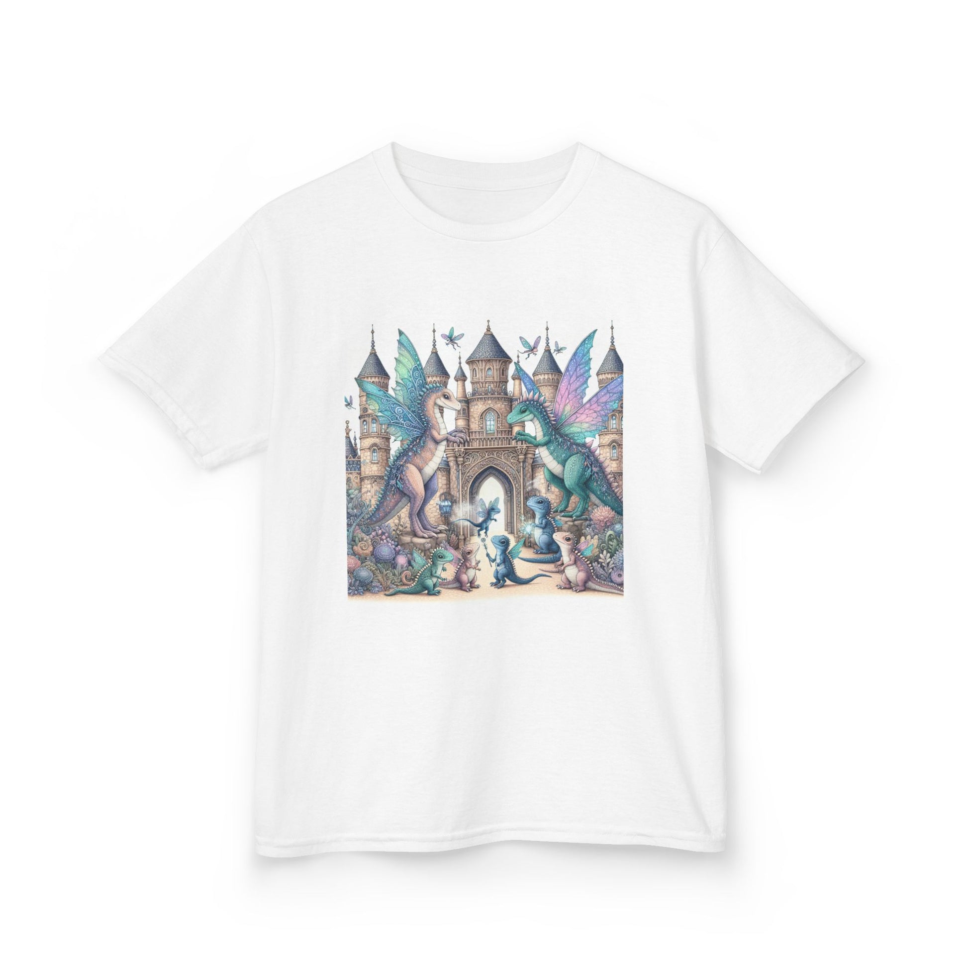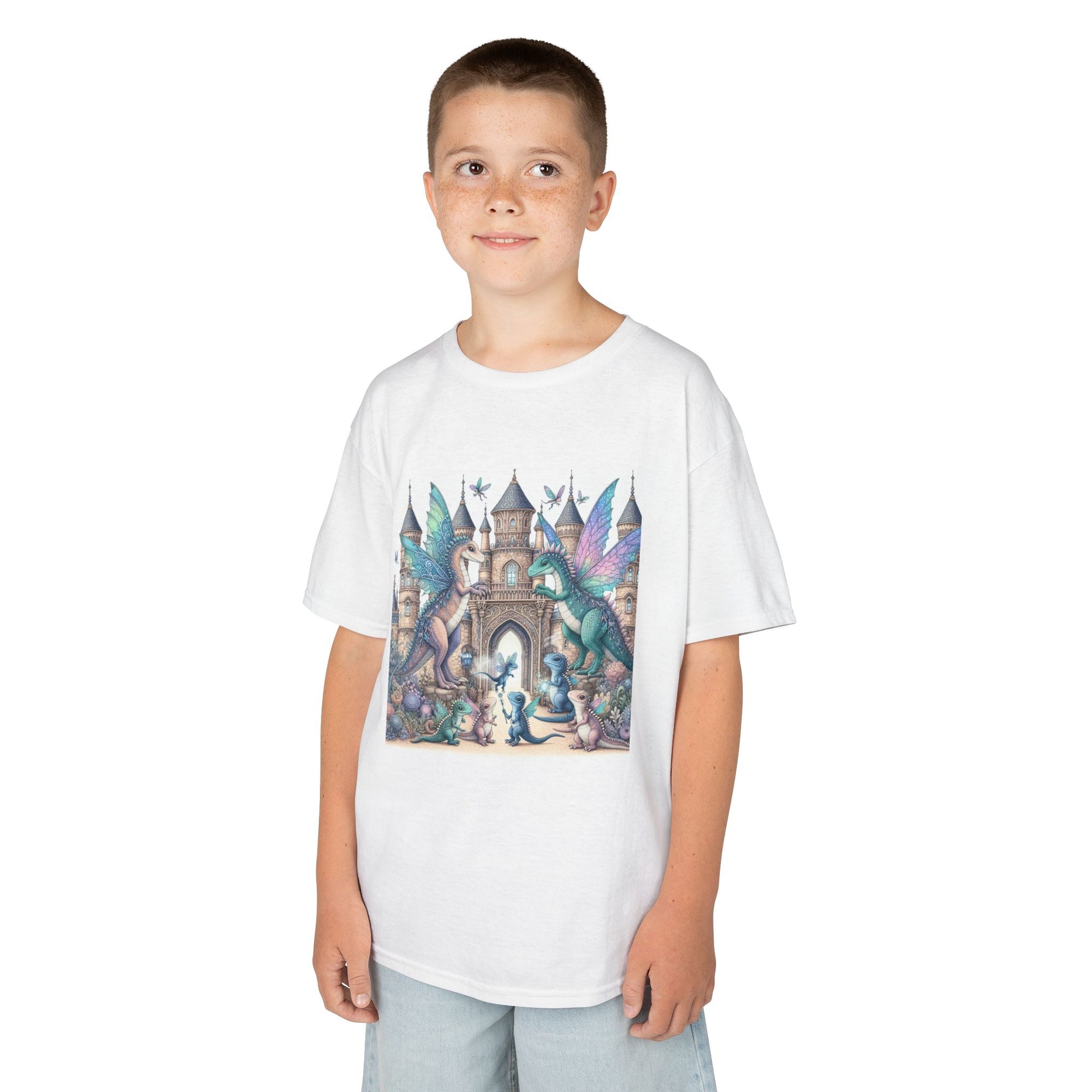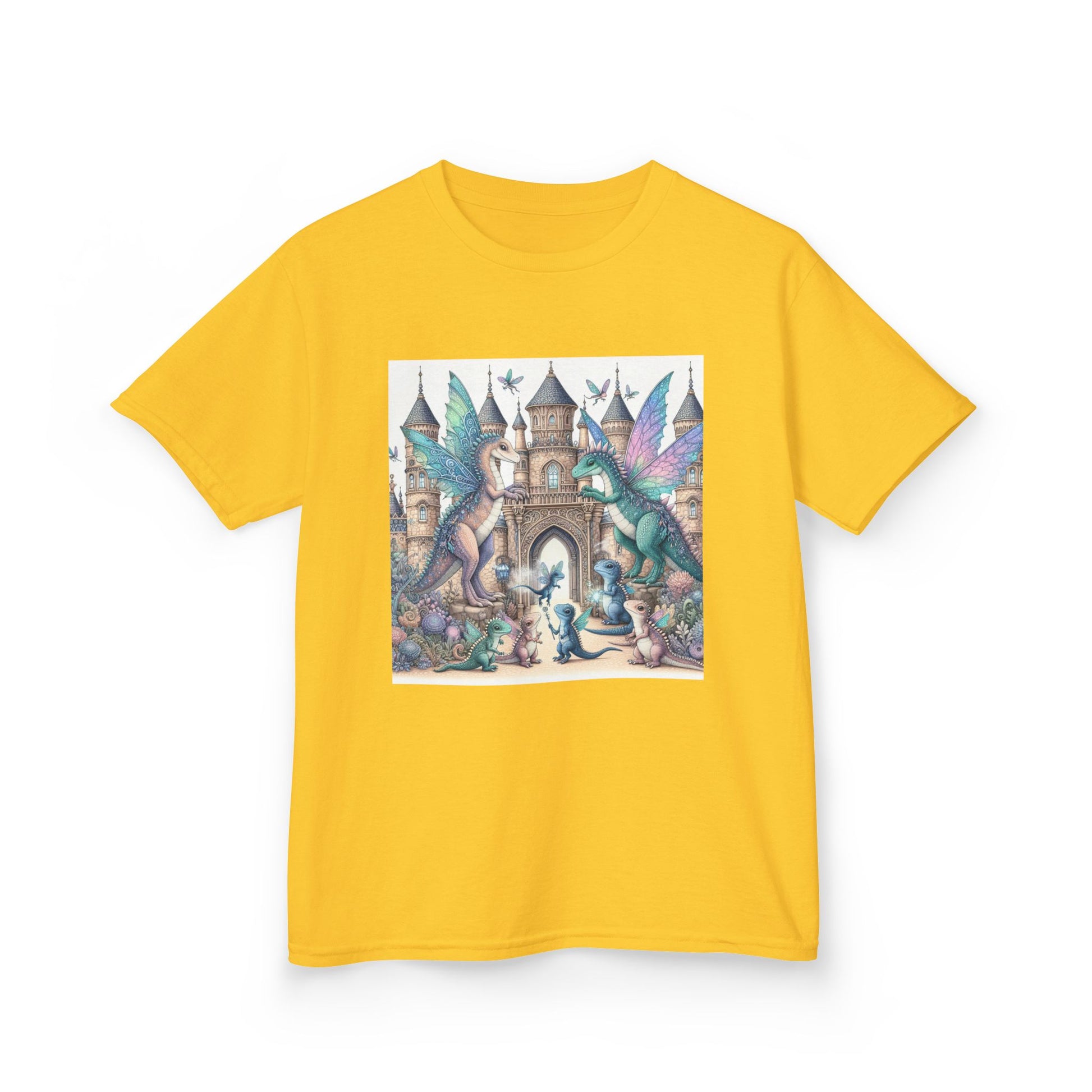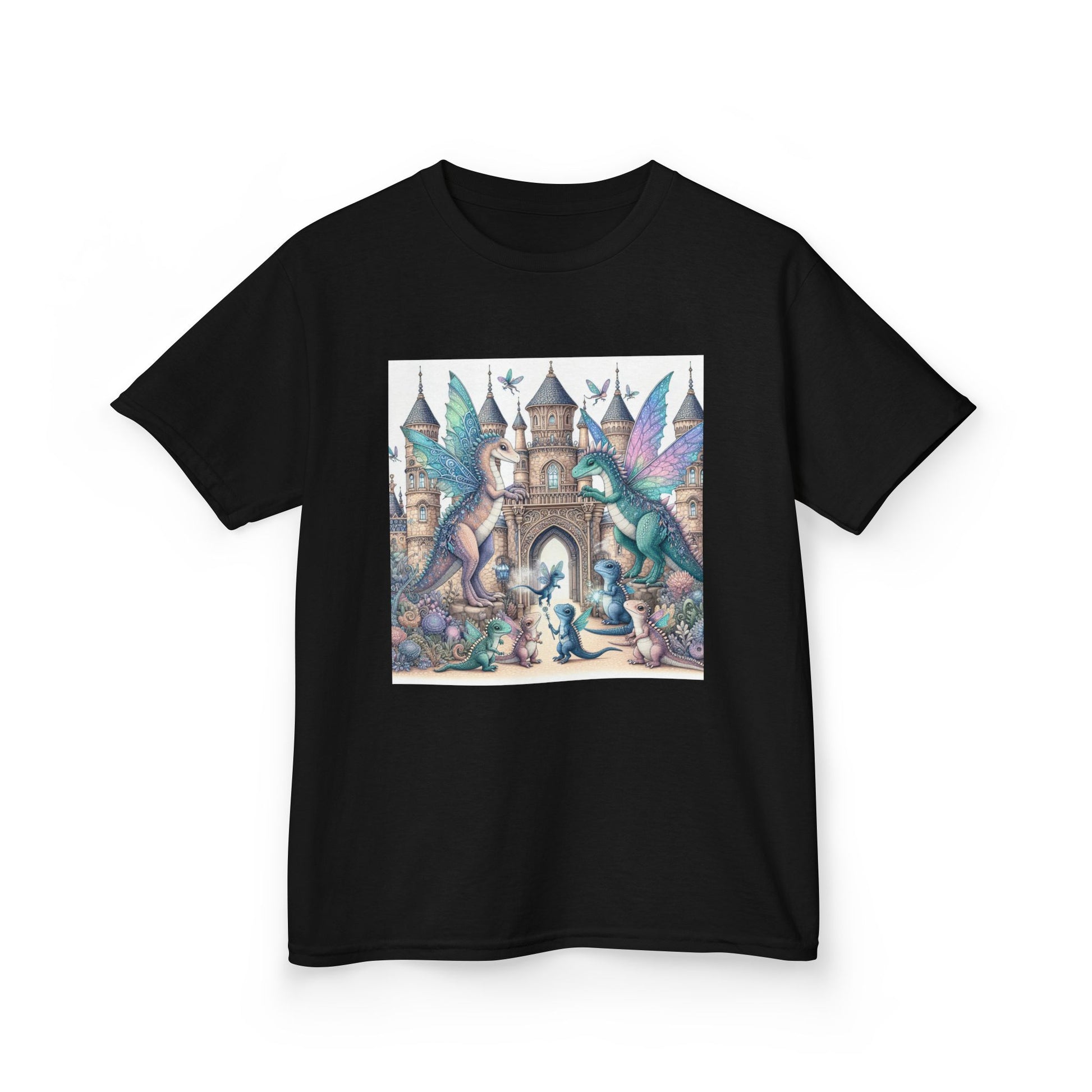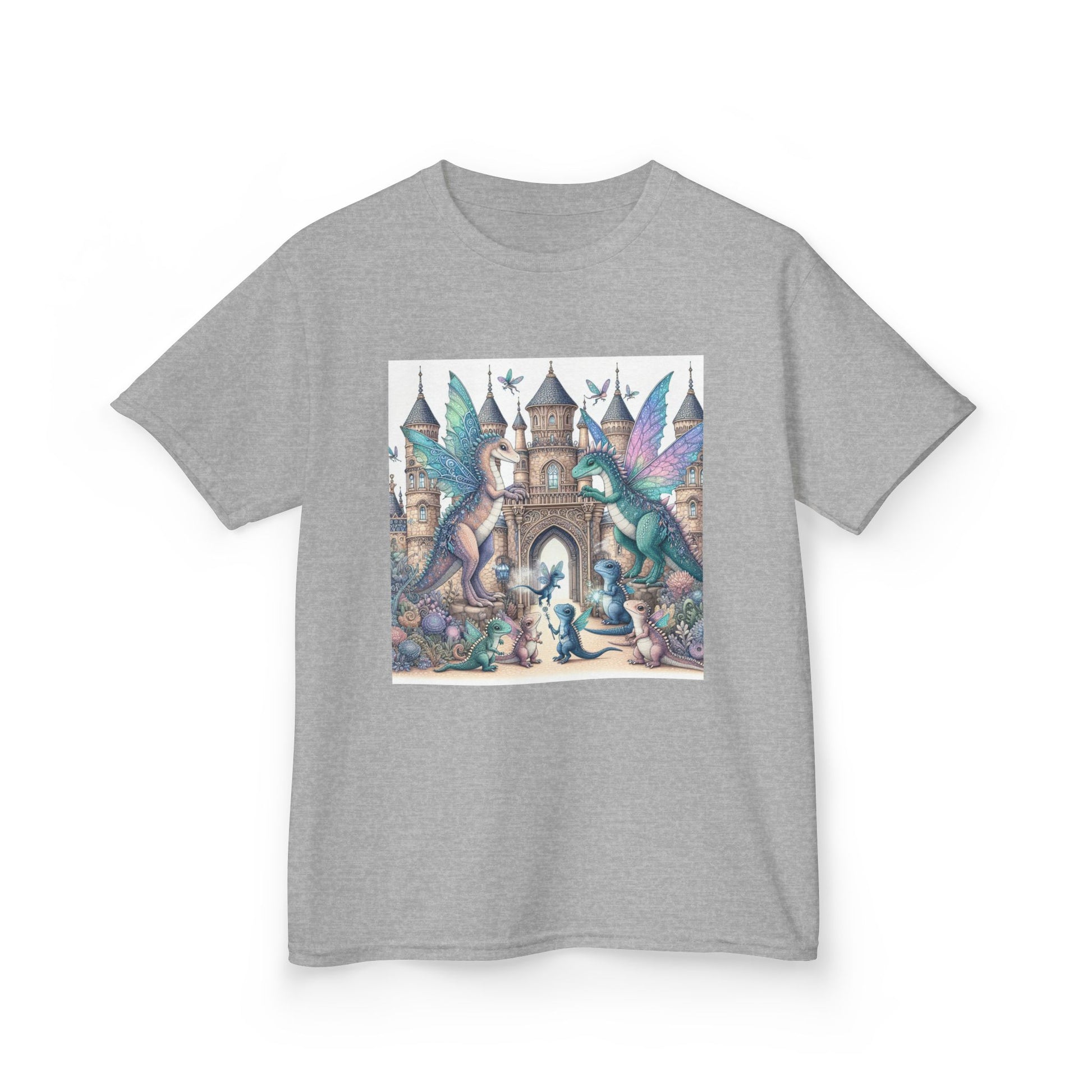 Kids Heavy Cotton™ Tee - Features a Castle and Fairy Dragon print - Unisex