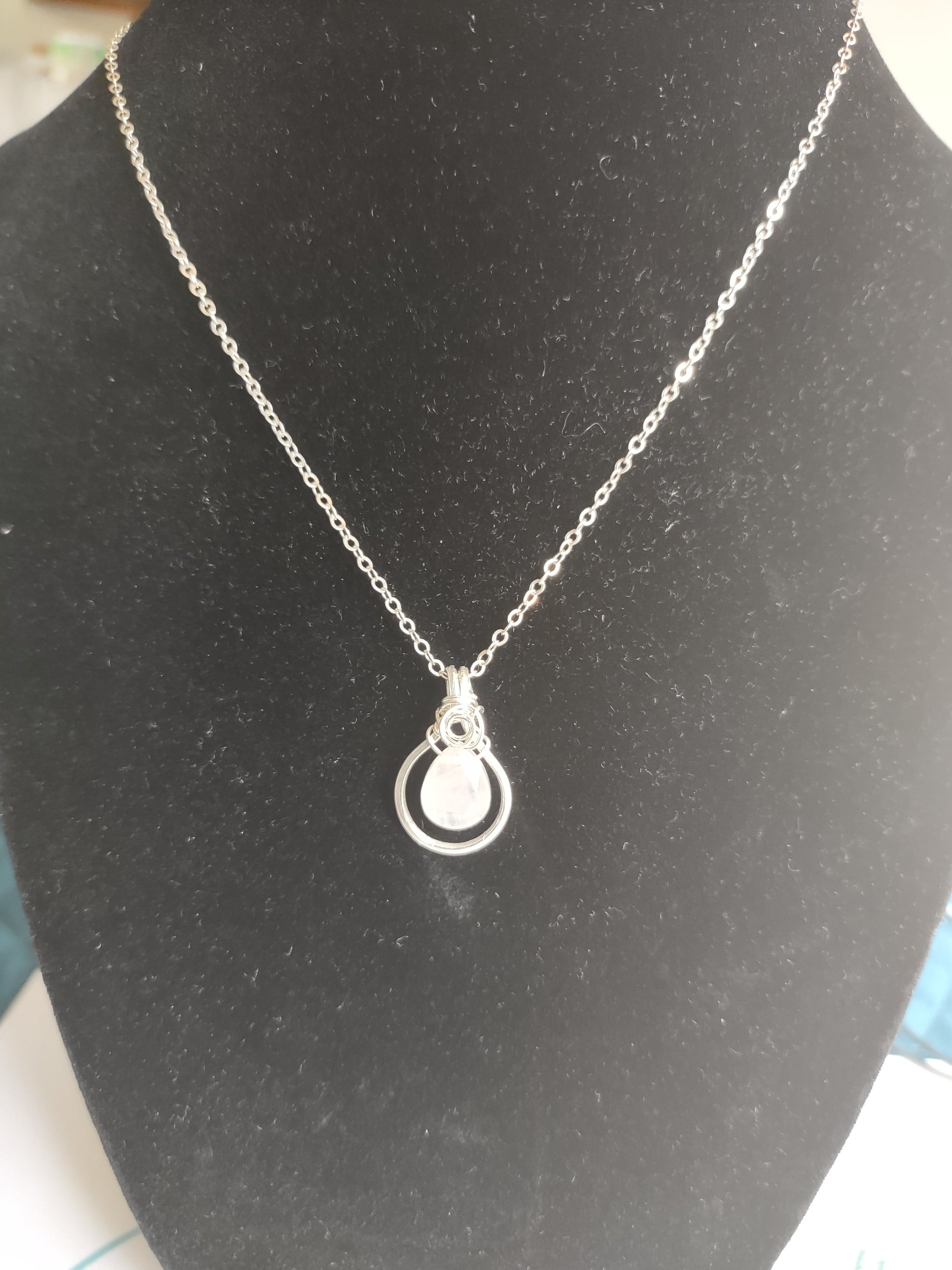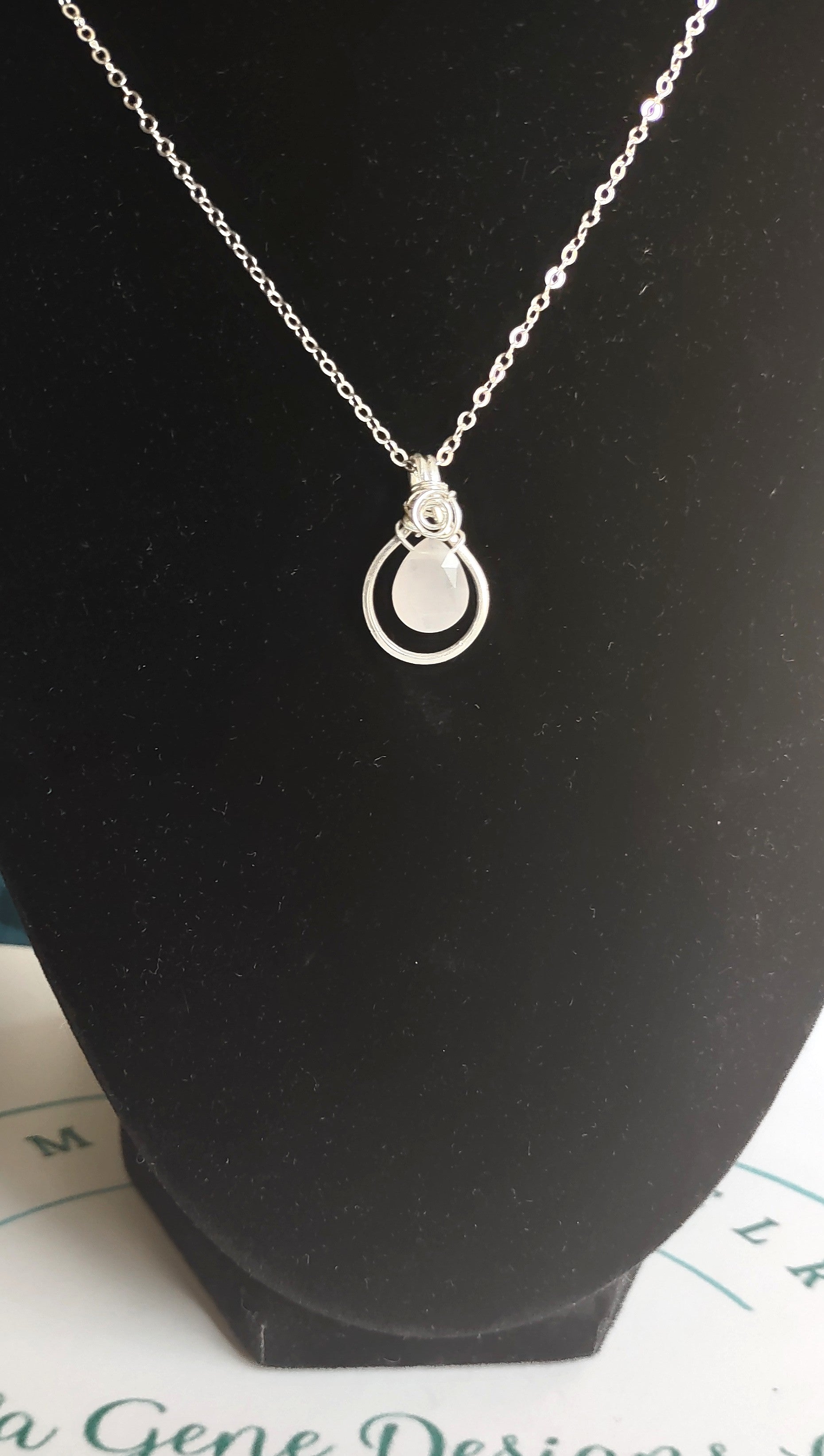 Celebrate October birthdays with a gift that is special, one that promotes love, peace and kindness. Rose Quartz is exactly that! This beautiful soft pink stone evokes a special charm of empathy and forgiveness. This pendant is made with a rose quartz briolette that is wrapped in square, sterling silver wire. The pendant is suspended on a 18" sterling silver chain. The closure consist of a lobster claw. -